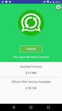 Its function is simple. This app compares the version, has been installed on your device, with official website version. Always you will have the latest version for WhatsApp without accessing their official website.