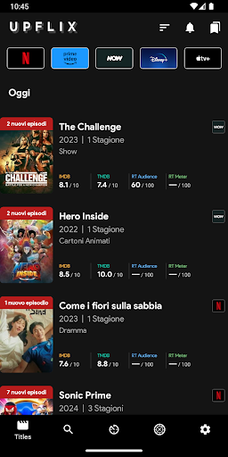 Sei alla ricerca della migliore guida allo streaming per film e serie TV? Upflix è l'app perfetta per te! Tieniti aggiornato sulle ultime uscite, scopri dove guardare i tuoi contenuti preferiti e confronta piattaforme come Netflix, HBOMax, Disney , Prime Video e Apple TV in un unico posto. Con Upflix, sarai sempre aggiornato su ciò che è disponibile sulle più grandi piattaforme di streaming.