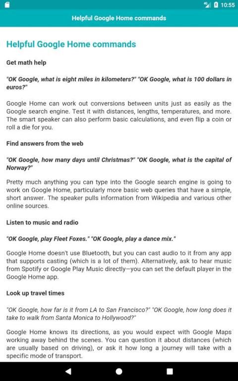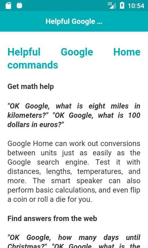 There are so many things added in this app like cool things you can do with your google home, most useful voice commands, tips and tricks. Install the app, learn and do more with Google Home.
