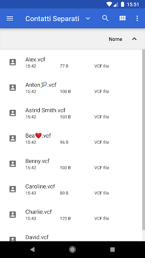 Questo splitter prende come input un file .vcf con più Vcards al suo interno e genera un file per ognuna di esse.