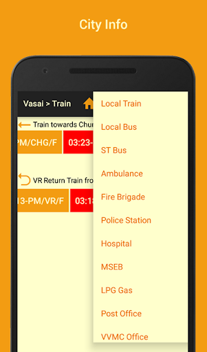 VASAI VIRAR Treno di ritorno è un'app Musura per Naigaon, Vasai, Nalasopara e Localiti di Vorar, contengono - ritorno orario del treno locale, orario degli autobus locali, orario per autobus, ambulanza, brigata di fuoco, stazione di polizia, ospedale, MSEB, Agenzia Gas, GSPUfficio postale, Ufficio RTO, VVMC, Piscina, Biblioteca, Parco Yazoo, Van, Spiagge, Resort, Film teatro, Fast food, Indirizzo di contatto del centro commerciale e numeri di telefono.