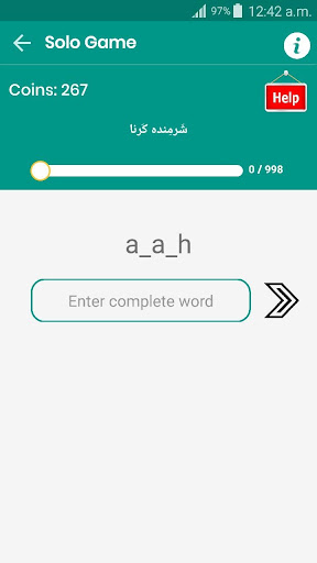 E quello che è il gioco di ortografia del verbo è sorprendentemente semplice e molto avvincente.Semplicemente devi indovinare l'ortografia del verbo scrivere in cima a TextView nell'attività del gioco e puoi mescolare l'ortografia VARB in scheda La vista di testo VARB, quindi iniziare a mettere alfabeti con toccare ogni alfabeto nelle seguenti caselle, puoi anche invertire gli alfabeti con il tapingsu alfabeto selezionato.Nota: la tua esperienza migliorerà con l'uso del gioco di ortografia del verbo.