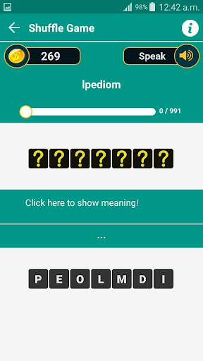 Vingherai 30 monete dailly, il che ti aiuta in un accenno alla confusione di virgola di ortografia del verbo.Puoi vedere i significati di ortografia dei verbi shuffle e ascoltare anche la pronuncia del verbo con l'aiuto di monete guadagnate.