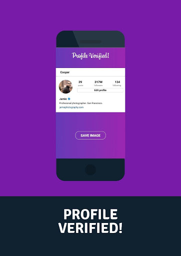 Ricevi la tua icona verificata sul tuo account sociale. Tutti i famosi (attori, djs, cantanti, youtubers.....) hanno i loro account verificati. Ora, con la nostra applicazione puoi simulare di avere un account verificato e di essere come uno di loro. Inoltre puoi scherzare la tua famiglia o gli amici mostrando loro che puoi verificare il tuo account!