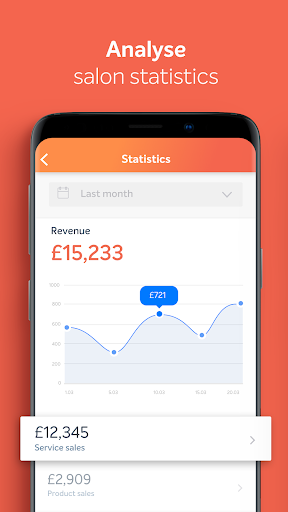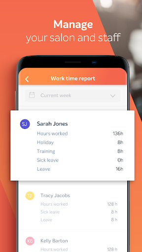 L'applicazione è ideale per il monitoraggio dell'attività finanziaria della tua azienda su base continuativa. È possibile visualizzare rapporti dettagliati e statistiche in qualsiasi momento, ovunque, anche dal comfort della tua casa. Rapporti di vendita, popolarità del prodotto e dei servizi e dei rapporti del tempo di lavoro del personale ti permetteranno di mantenere il tuo dito sul polso del tuo salone e fornire i dati necessari sulla condizione della tua attività.