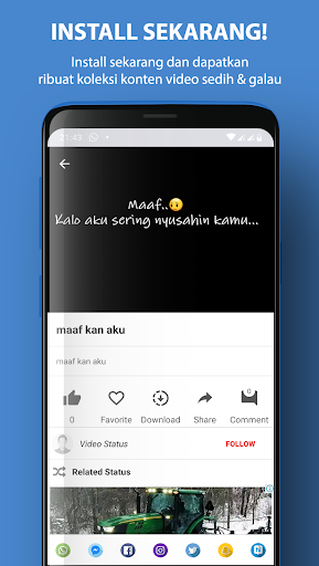 Lagi galau dan sedih karena temen, pacar, atau gebetan? Aplikasi Video Sedih Status WA Galau ini bisa jadi temen curhat kamu nih. Kamu tinggal download dan klik pilih videonya, bakalan ada banyak banget status WA video lagu-lagu sedih, video kata-kata status WA sedih, status video WA sedih buat pacar yang bisa mengekspresikan perasaanmu.
