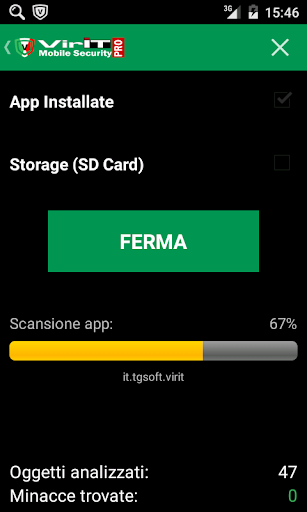 • Scansione su richiesta sia delle app che delle memorie di archiviazione (SD Card).