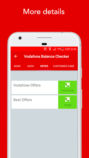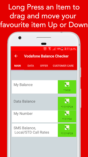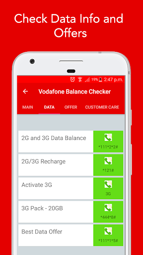 Vodafone Balance Check: Main Balance check, Data balance check, Due Amount check, To transfer balance at your finger-tips, Payment details, Last recharge history at your finger-tips.