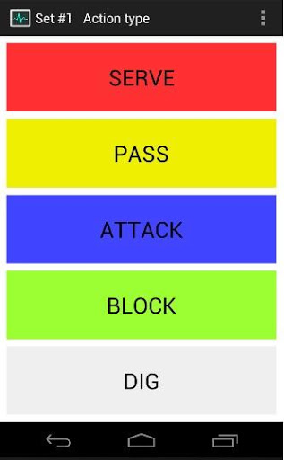 L'applicazione consente azioni di scrittura dei giocatori di pallavolo durante il gioco di pallavolo (servire, attacco, blocco, passare, scavare) e il risultato di ogni azione (successo, fallimento, regolare).