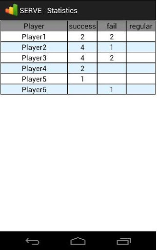 Statistiche disponibili con tabelle dei risultati di ciascun giocatore.Pagina Statistica scorrevole a destra / sinistra per cambiare il tipo di azione di statistiche