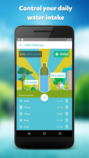 Questo e’ tutto ogni volta che ti ricordiamo di bere acqua e accedi all’applicazione dovrai cliccare sul símbolo + e indicare la quantita di acqua che hai bevuto ( pero bevuta per davvero eh? In modo da notare il piu’ velocemente possibile i benefici dell’acqua) Una simpática interfaccia a forma di bottiglia ti indicara’ la % di acqua consumata durante il giorno e quanta piu’ acqua berrai piu’ verde e pieno di foglie sara’ lo sfondo della tua applicazione.