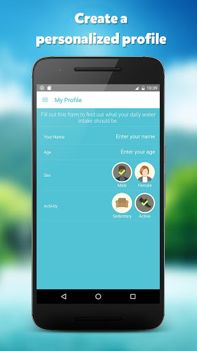 Il suo uso e’ estremamente facile, una volta entrato nell’app ti faremo domande basiche sulla tua eta’, sesso, se sei una persona attiva ( fai sport regularmente) o sedentaria (che l’80 % del tuo tempo la tua attivita’ física e’ limitata). Con questi dati ti potremo consigliare la quantita’ di acqua che dovresti ingerire giornalmente. Facile no?