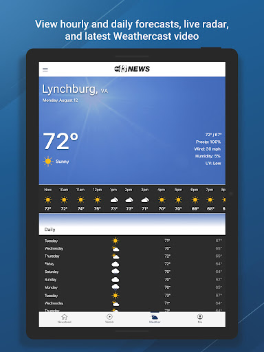 L'app WSET ABC 13 News offre notizie, meteorologi e sport in un istante.Con la nuova app completamente riprogettata puoi guardare i telegiornali in diretta, ottenere notizie locali e nazionali, meteo e traffico nazionali e rimanere informato tramite notifiche che ti avvisano di ultime notizie ed eventi locali.