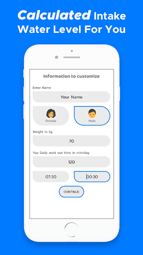 Give me your height and weight and recommended water intake level will be set for you! Tell me your awake time and water reminder warns you to drink. Before your sleep time,