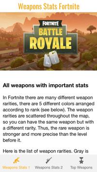 There are many different factors that assess a Weapon. These items are all listed with their data in our Fortnite Weapons Stats. So you always know which weapon is the best and are thus one step ahead of your opponent! We try to keep the app Fortnite Weapons always up to date