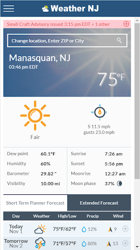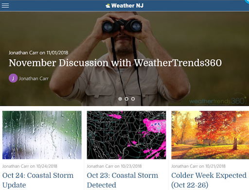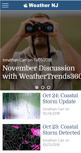 The Weather NJ app will bring you current conditions, an automated 6-day weather forecast, live radar, access to all Weather NJ articles, an about section and an external link to paid premium services. All Weather NJ app services are free to the public.