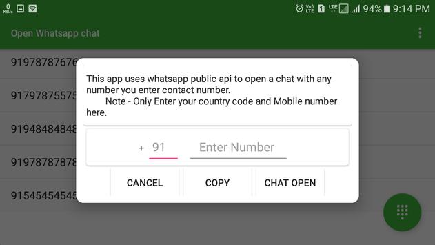 This app uses whatsapp public api to open a chat with any number you enter contact number.