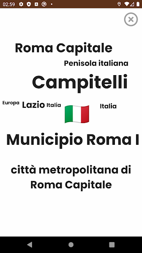 "Dove sono - informazioni sulla località" ha lo scopo di fornire informazioni dettagliate sui confini amministrativi della località corrente e nella lingua selezionata.