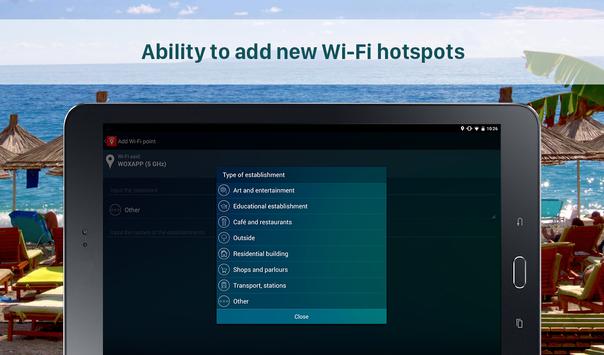 ► With this app you will surely get a quick and seamless access even being offline. The virtual map includes such popular venues and places of interests as hotels, cafés, restaurants, music halls and libraries – any place that may have a free wifi access point. Our wifi passwords app is like an assistance and way of information sharing with other Android users. And do not forget to share your feedback with developers. Our mutual efforts will make Wi-Fi Space a perfect mobile app for those who are always on foot.