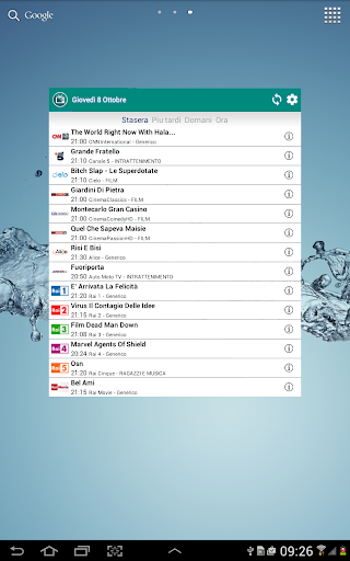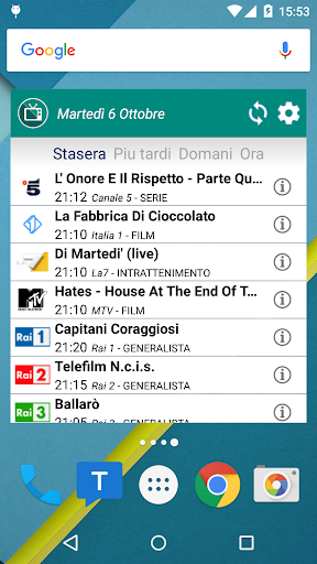 Tutto a portata di vista sulla home del tuo smartphone con questo widget che mostra i programmi tv della serata.