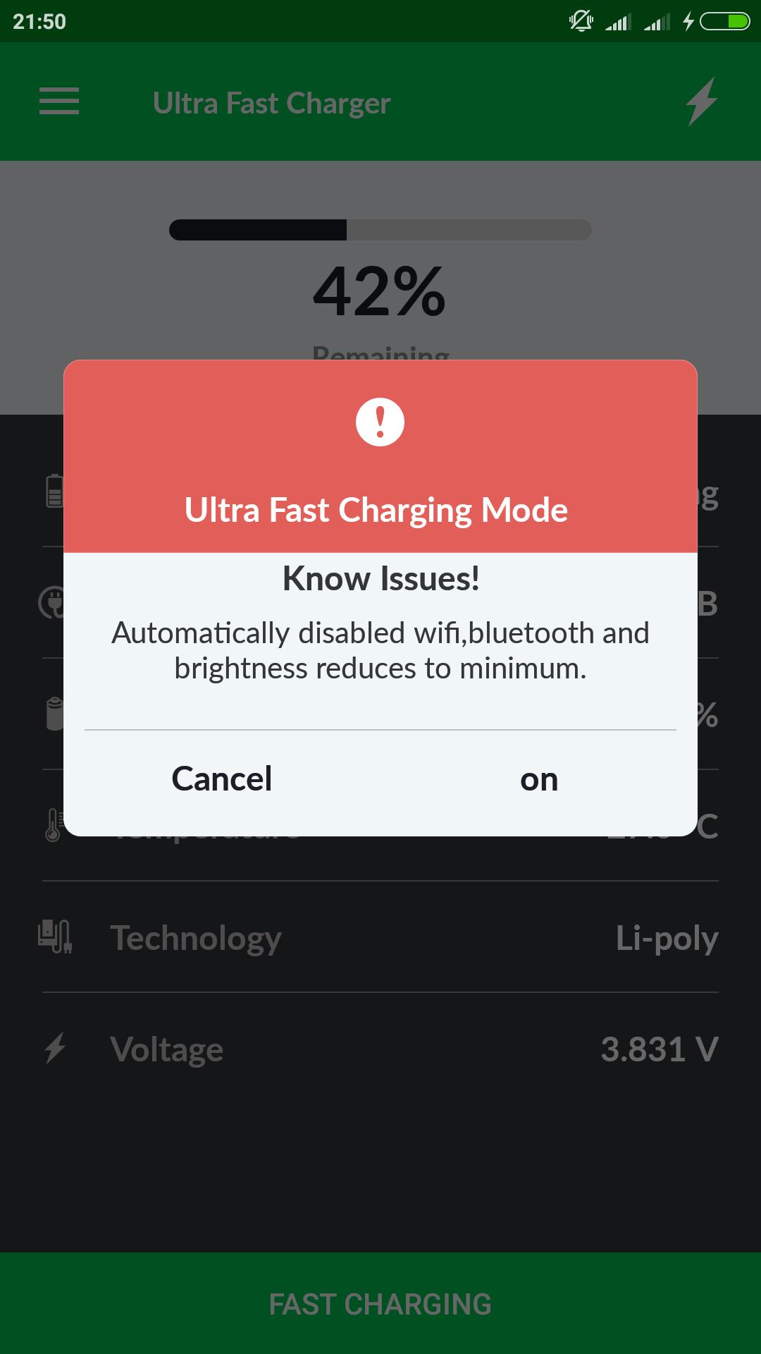 Ultra fast charging app gives idea about battery optimizing tips, how to make your battery live more. It also give details information about your battery like