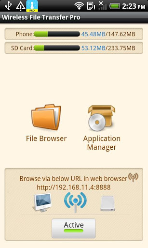 Transfer and manage your files wirelesslyWireless File Transfer Pro is the advanced version of Wireless File Transfer. Features:Wireless apk installationFile managementapp managementMultiple file selectionSearchThumbnailsList view