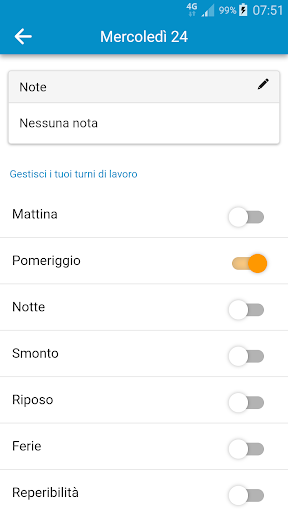Seleziona differenti tipologie di turni:
