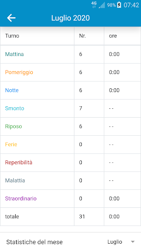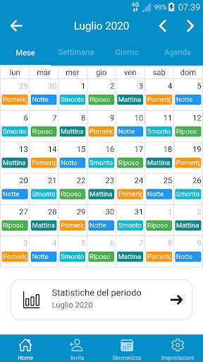 permette all'utente di poter impostare la propria organizzazione del mese corrente tramite dei semplici tap sui giorni che si desidera inserendo il turno di lavoro scelto. I nostri utenti riescono ad organizzare il proprio calendario mensile in meno di 1 minuto!