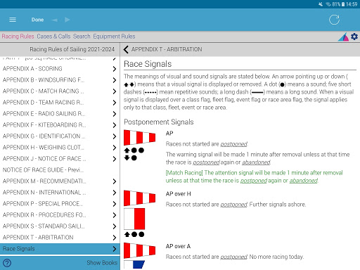 una modalità regoleNelle impostazioni consente all'ebook integrato di visualizzare emendamenti per corse di corse di windsurf, squadra, match, radio o kiteboard per la tua comodità.