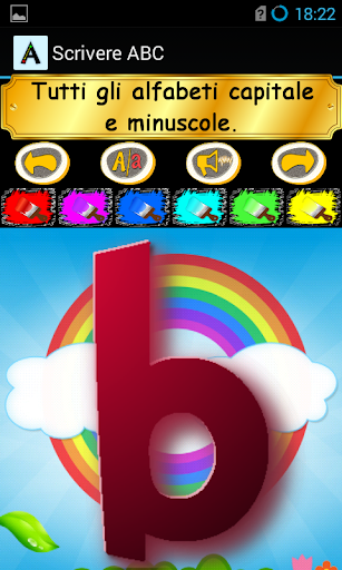 Con colori vivaci e elementi interattivi, Scrivere ABC aiuta a mantenere il vostro bambino curioso e con una fame da imparare. La nostra applicazione vi aiuterà a preparare il vostro bambino per il suo imminente formazione di età 4-6. L'applicazione insegna al bambino di disegnare correttamente le lettere con il dito - una capacità che possono poi tradotto in una penna o una matita, quando sarà il momento. Con accompagnamento di immagini e una scelta di colori per dipingere con, Scrivere ABC è garantito per mantenere il vostro bambino interessato dal primo giorno per un tempo che non hanno più bisogno della domanda.