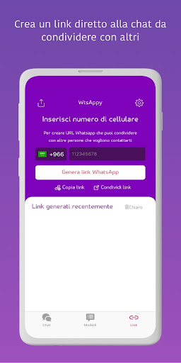 • Crea il tuo link WhatsApp da WtsAppy e condividilo con chiunque vuole contattarti su WhatsApp: basta un click invece di condividere il numero e salvare il contatto. Il link WhatsApp è necessario, specialmente se gestisci un’azienda, e ora puoi ottenerlo in 10 secondi da WtsAppy!
