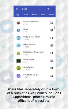 La migliore caratteristica di XShare è che puoi condividere file separatamente o in un secchio e che include app, video, foto, musica, ufficio (pdf, documenti) ecc.