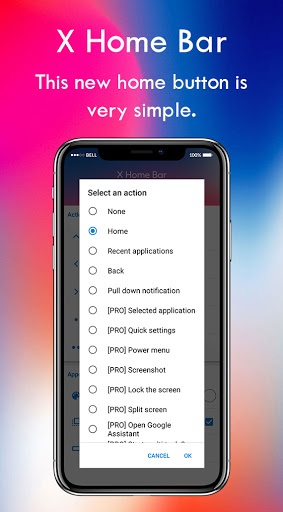 X Home Bar - I servizi di controllo dei gesti gratuiti vengono utilizzati per avviare diverse azioni (avviare Multi-Task, Pannello di notifica a discesa, tirare giù le impostazioni rapide, aprire il menu di accensione, simulare indietro). Queste azioni possono aiutare le persone che devono usare il loro telefono con una sola mano per avviare le azioni che non sono facili da fare con una sola mano (ad esempio le notifiche di abbassamento). I servizi di accessibilità sono utilizzati solo a queste azioni.