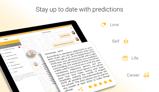• Previsioni accurate. Le risposte alle tue domande più grandi saranno basate sulle letture del grafico alla nascita una volta impostato la data e il luogo di nascita.