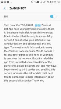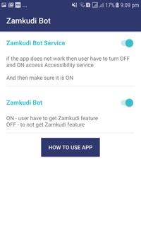 Utilizing Zamkudi Bot is amazingly basic. Simply introduce the application, open it and empower the required Accessibility Service.