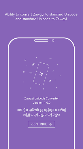 Zawgyi Unicode Converter è un'app / apk di conversione automatica Zawgyi-One e standard Myanmar Unicode gratuita e open source creata dal team DagonMetric Myanmar Tools.