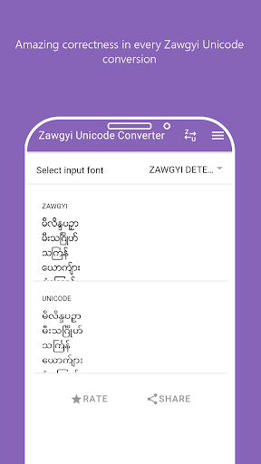 - Incredibile correttezza in ogni conversione Zawgyi Unicode.