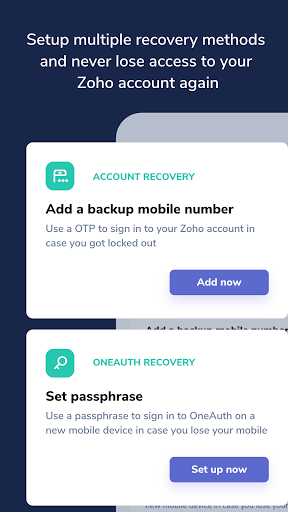 Zoho Oneauth protegge il tuo account Zoho dalle violazioni della password aggiungendo un ulteriore livello di sicurezza attraverso l'autenticazione multi -fattore. Abilita la verifica a 2 passaggi senza soluzione di continuità e facilita anche l'accesso con un clic a tutte le app Zoho tramite Single Sign-On. Installa l'app, scegli la modalità di autenticazione (include l'impronta digitale) e sei pronto per andare.