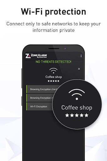 Gli attacchi a dispositivi mobili sono una grave minaccia che colpisce migliaia di persone ogni giorno. ZoneAlarm Mobile Security protegge il tuo dispositivo mobile dai più recenti e sofisticati attacchi utilizzando la tecnologia più avanzata e aggiornata di Check Point.