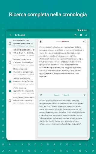 - Tutto il testo acquisito viene memorizzato in una cartella della cronologia e può essere aperto e modificato in qualsiasi momento