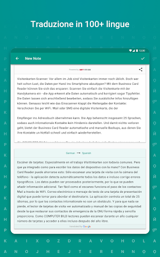 Il testo riconosciuto può essere immediatamente modificato, tradotto, pubblicato su Facebook, Twitter, Evernote, DropBox o inoltrato tramite e-mail o SMS.