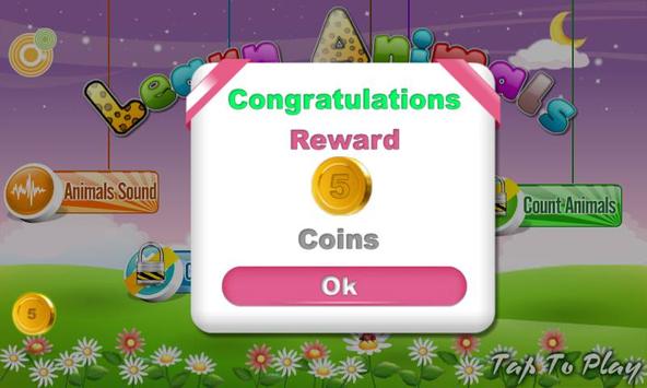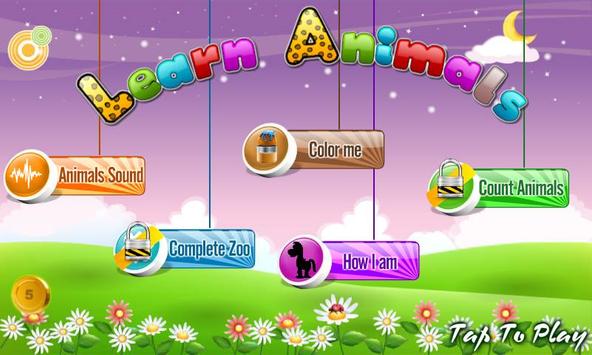 Enjoy with five games teach you animals names and sound , stay in your sofa and color your animals , count them .