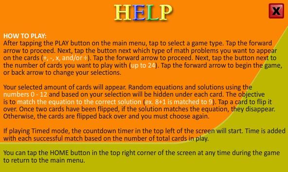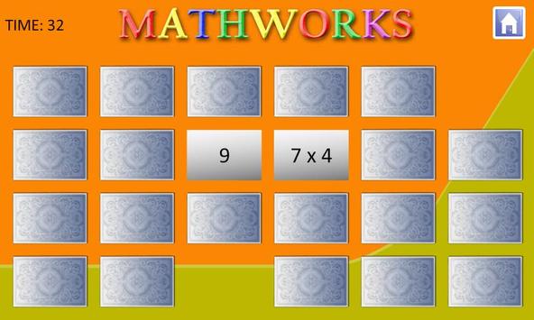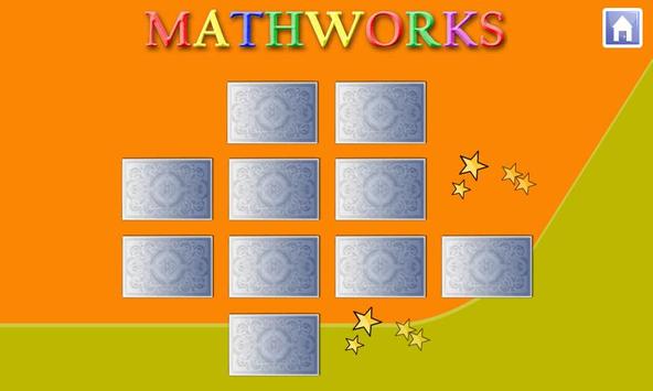 Mathworks is a memory game with an educational twist! Choose between four math equations; addition, subtraction, multiplication, and division to create a brain bending puzzle of mathematical proportions. You can mix and match math symbols with any puzzle size ranging from 12 cards to 24 cards.