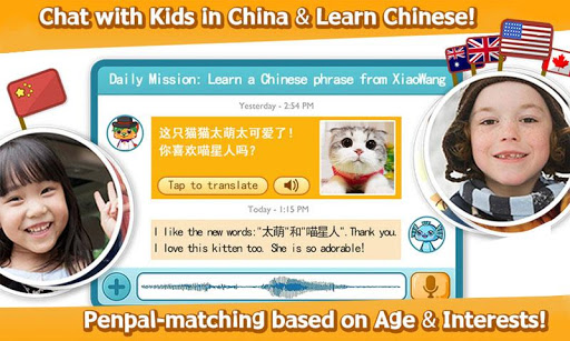 Impara il cinese gratis chiacchierando con i bambini della stessa età in Cina. Completa missioni con nuovi amici / Penpals in Cina per imparare il cinese mandarino, insegnare l'inglese e guadagnare ricompense.