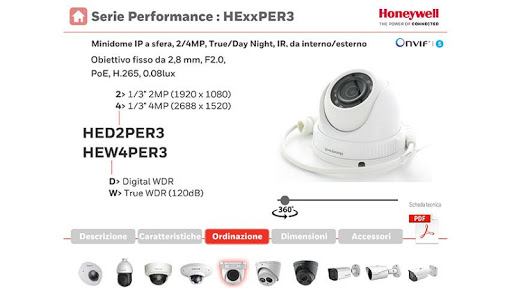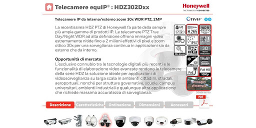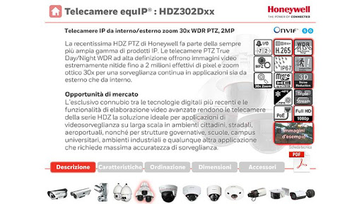 Presentazione interattiva di Honeywell Security sulla gamma di telecamere IP e analogiche di alta qualità e registratori NVR / DVR.