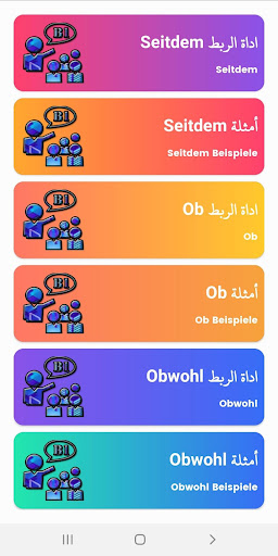 Definizione di anima, pronomi, famiglia, numeri, giorni della settimana, mesi, stagioni dell'anno, Colori, frutta, verdura, animali, tendenze e molte azioni per ogni livello, verbi separati oltre a Dativ e Akkusativ