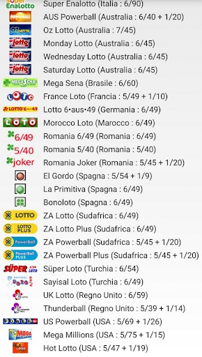 Questa applicazione aiuta a giocare a diverse lotterie modiali (Italia, Australia, Brasile, Francia, Germania, Marocco, Regno Unito, Romania, Spagna, Sudafrica, Turchia, Stati Uniti d'America). Si può usare parzialmente per le lotterie che hanno giochi simili.