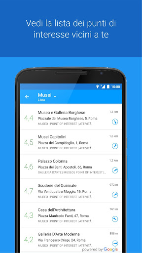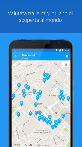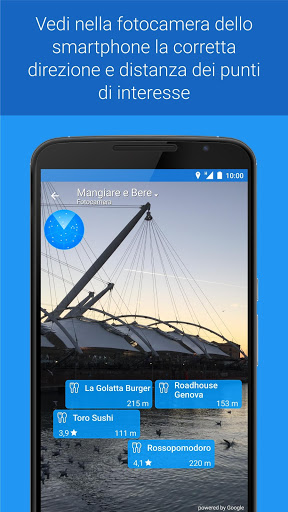 : Per ricevere informazioni accurate è preferibile trovarsi in una zona a cielo aperto, con il GPS attivato. Tutte le informazioni sui luoghi sono tratte da 'Google Places'.