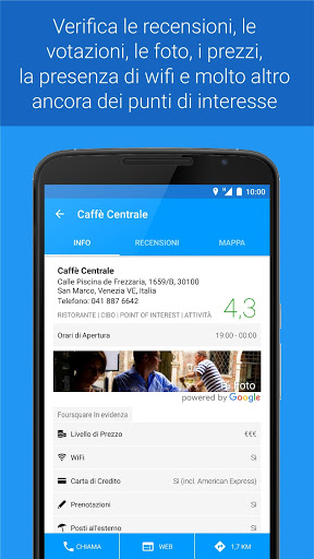 4. Accedere a recensioni utenti, indicazioni, numeri di telefono, orari di apertura, fasce di prezzo, foto e altro ancora.