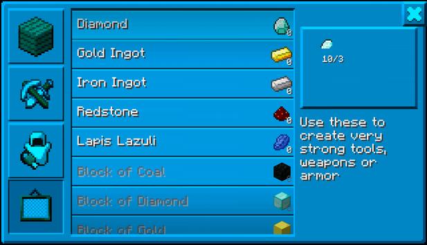 Craftable Ingots Mod for Minecraft Pocket (MCPE) adds new ingots to the game which can be used to craft tools and gear. The ingots can be obtained using the original tools in Minecraft.